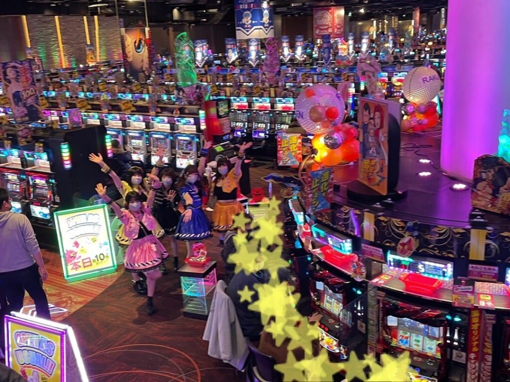 パチンコ512台、スロット376台。駅近でアクセス良好。旧イベント日は1の付く日・8の付く日など。